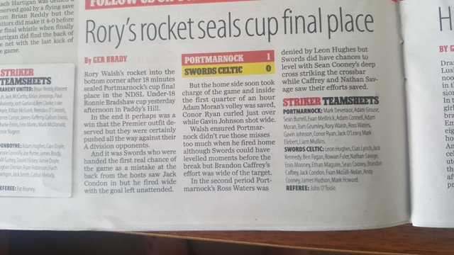 "Rory's Rocket seals cup final place" Writes Ger Brady for the Herald Striker