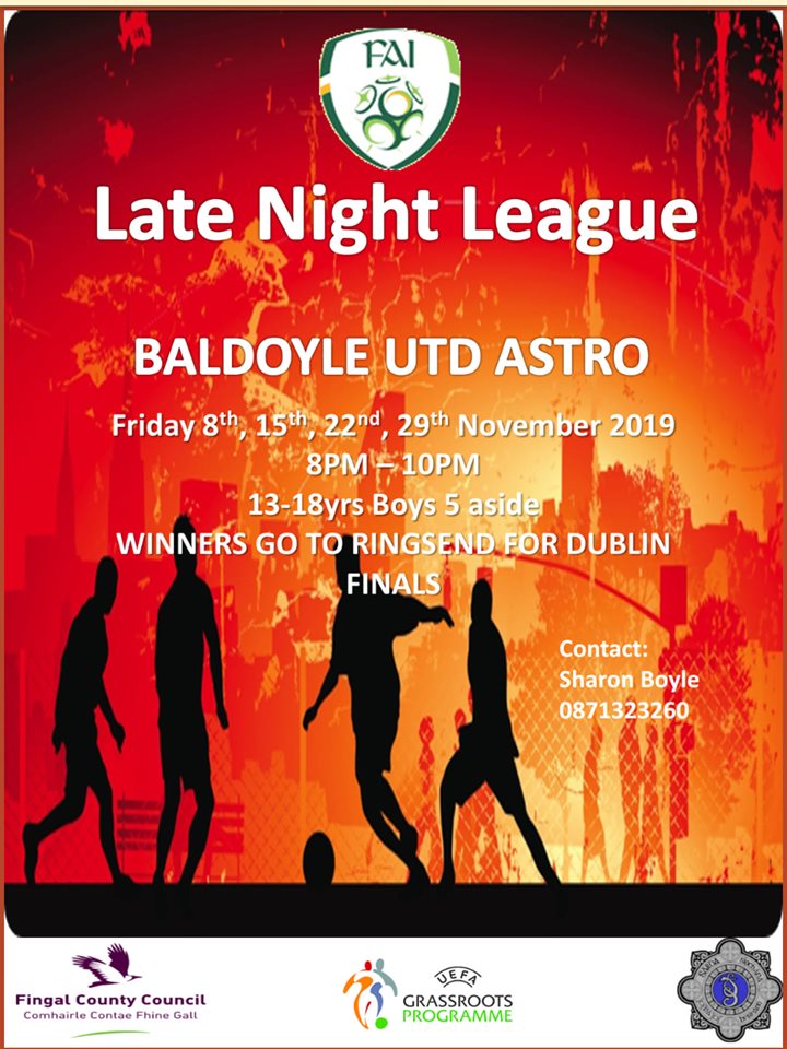 A great programme running on Friday nights in Baldoyle Utd for 4 weeks. The winners go to the Dublin finals in Ringend in December and play other areas on that night