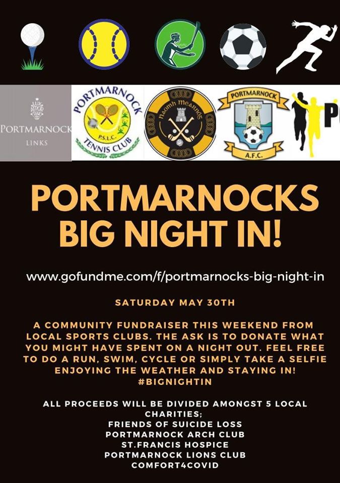 Portmarnock AFC, Naomh Mearnog , Portmarnock Tennis Club, Portmarnock Athletics Club and The Links Portmarnock are coming together this Saturday May 30th to raise money to be shared equally among 5 local charities.